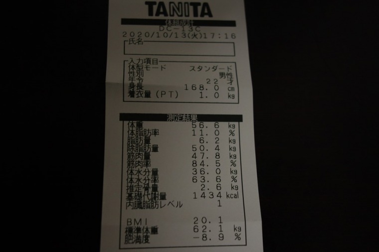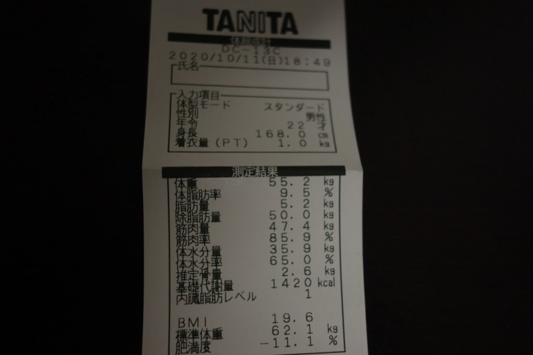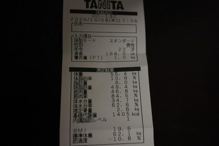 食前に行ったせいか、体脂肪率が下がった。
