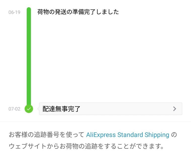 これが初めてだったのでこんなもんかなと思ってましたが、各種配送方法の中でAliExpress Standard Shippingは割と遅い方だと思います。