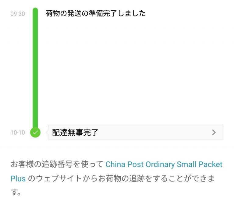 同時期にEMSやDHLの速さを見せつけられたため遅く感じましたがAliの中では早いほうだと思います。