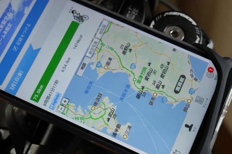 そのときは片道30kmくらい(2時間くらい)スマホを常時点灯させていたらそれだけでお昼ご飯の時点でバッテリーは20%くらいになってしまいました。