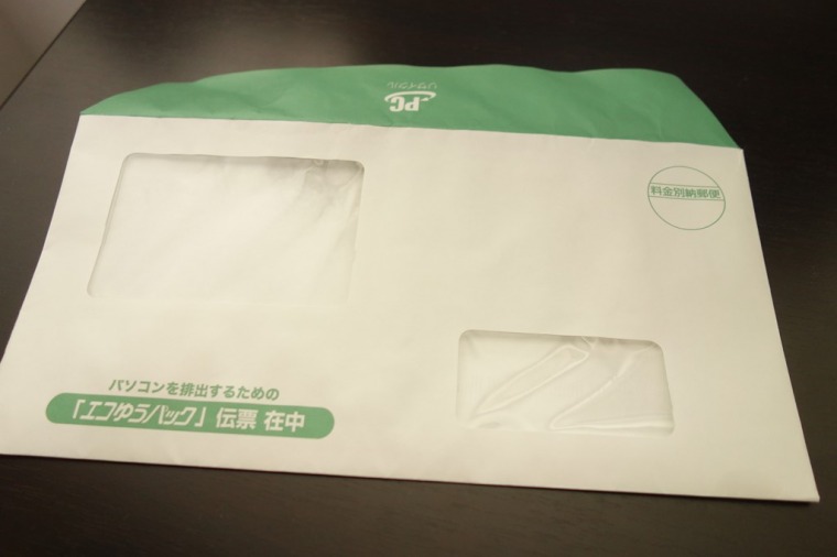 - 3日くらいで封筒が届くのでパソコンを袋に入れて伝票を貼る