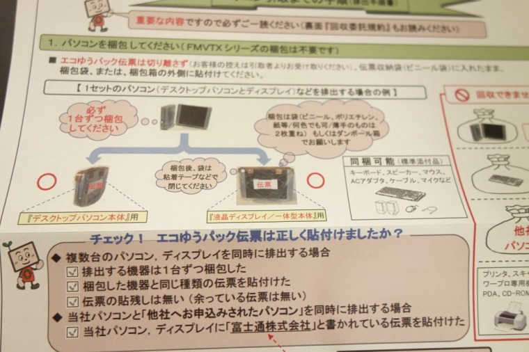 以上、富士通のパソコンリサイクルの手順解説でした。