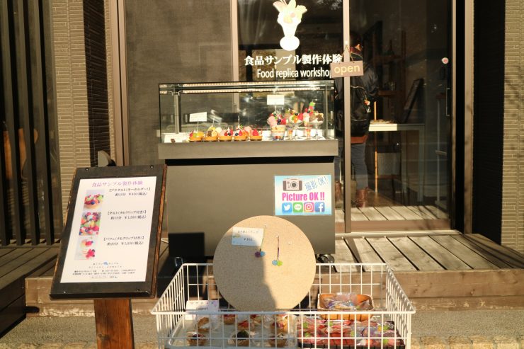 2分くらい歩いたところには食品サンプル製作を体験できるところもありました。 安いものだと850円、15分でプチタルトが作れるようですよ。