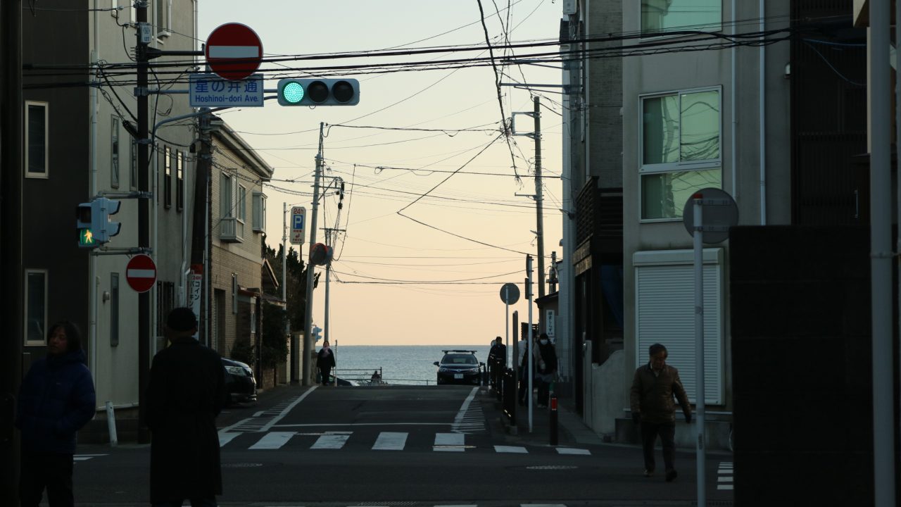 夕日が沈んでくるとこんな感じです。ちなみに僕は鶴岡八幡宮から直接来ましたが、ここは長谷駅から2、3分で歩いてこれます。
