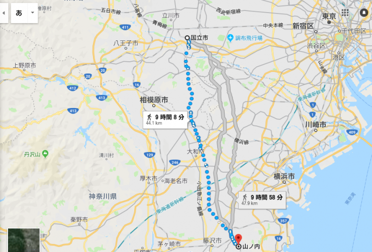 多摩市に入りました。新しい街なのでちょっと違う雰囲気を感じますが、まだまだ出発してから30分くらいしかたっていません。