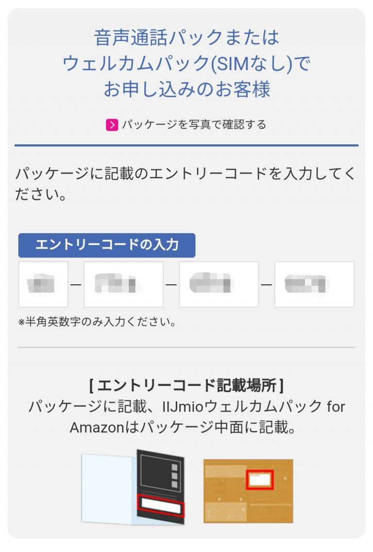そしてその下にあるエントリーコード入力欄に、パッケージの中に記載されていたエントリーコードを入力します。