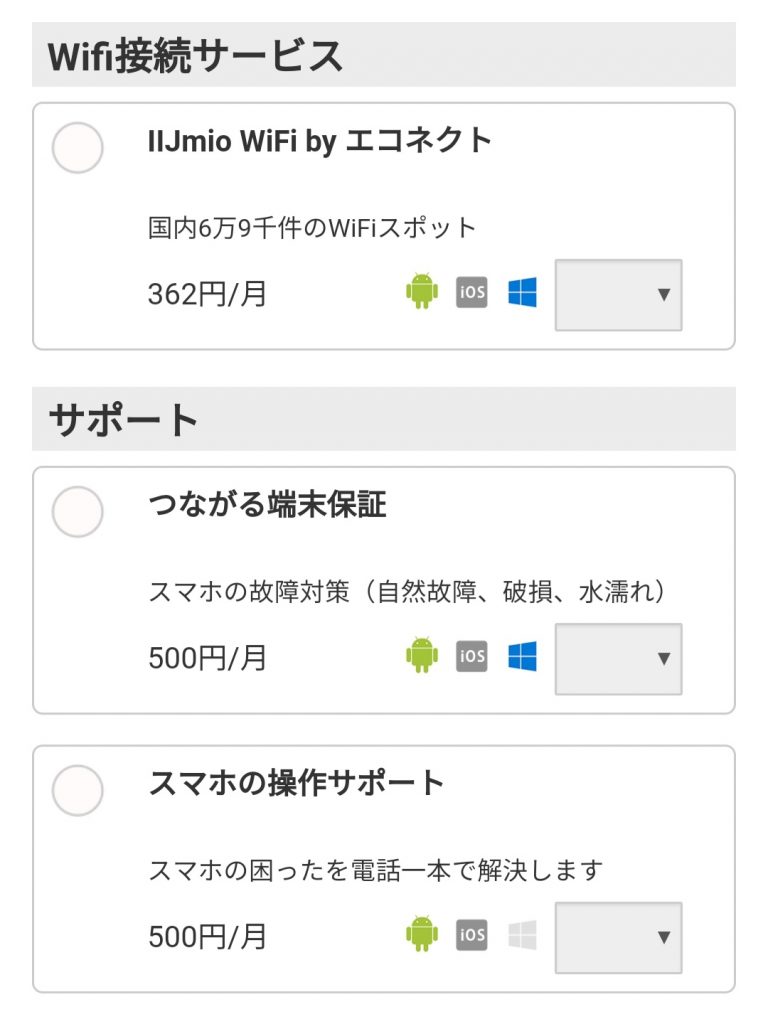 次に、データのみかSMSや音声通話をつけるかを選びます。