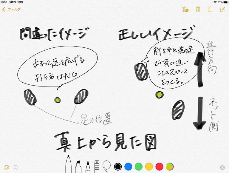 そしてもう一つは、股抜き時の手とラケットの距離を考えるとある程度打点を低くしないとラケット面が開きすぎてボールをコントロールできなくなってしまうからです。