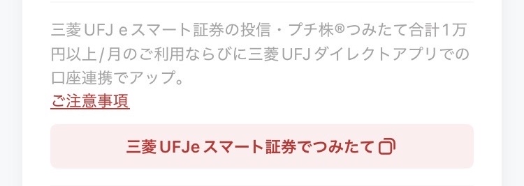 注意点として、三菱UFJ銀行アプリでの口座連携も条件に入っているため、こちらも対応する必要があります。以下画像に書いてある部分ですね。