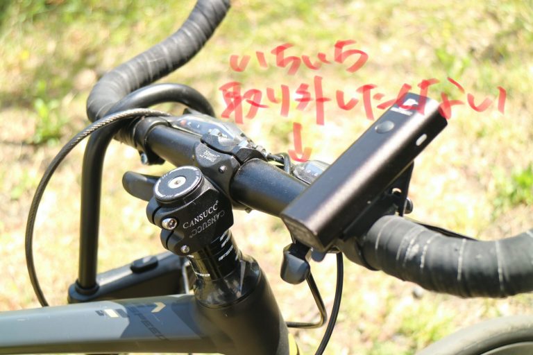 それでもライトは無いと困るので多少取り外しが面倒でも使う気になりますが、サイコンはなくても困らないので、外す手間が面倒になるくらいならいっそ使うのを止めよう、という判断になったわけです。
