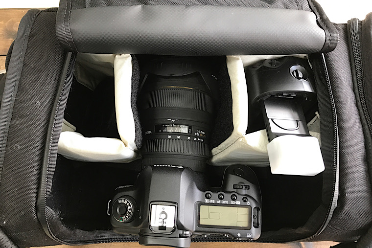標準ズームレンズをつけたEOS 5D MarkⅡをリュックに収めるために購入しました。