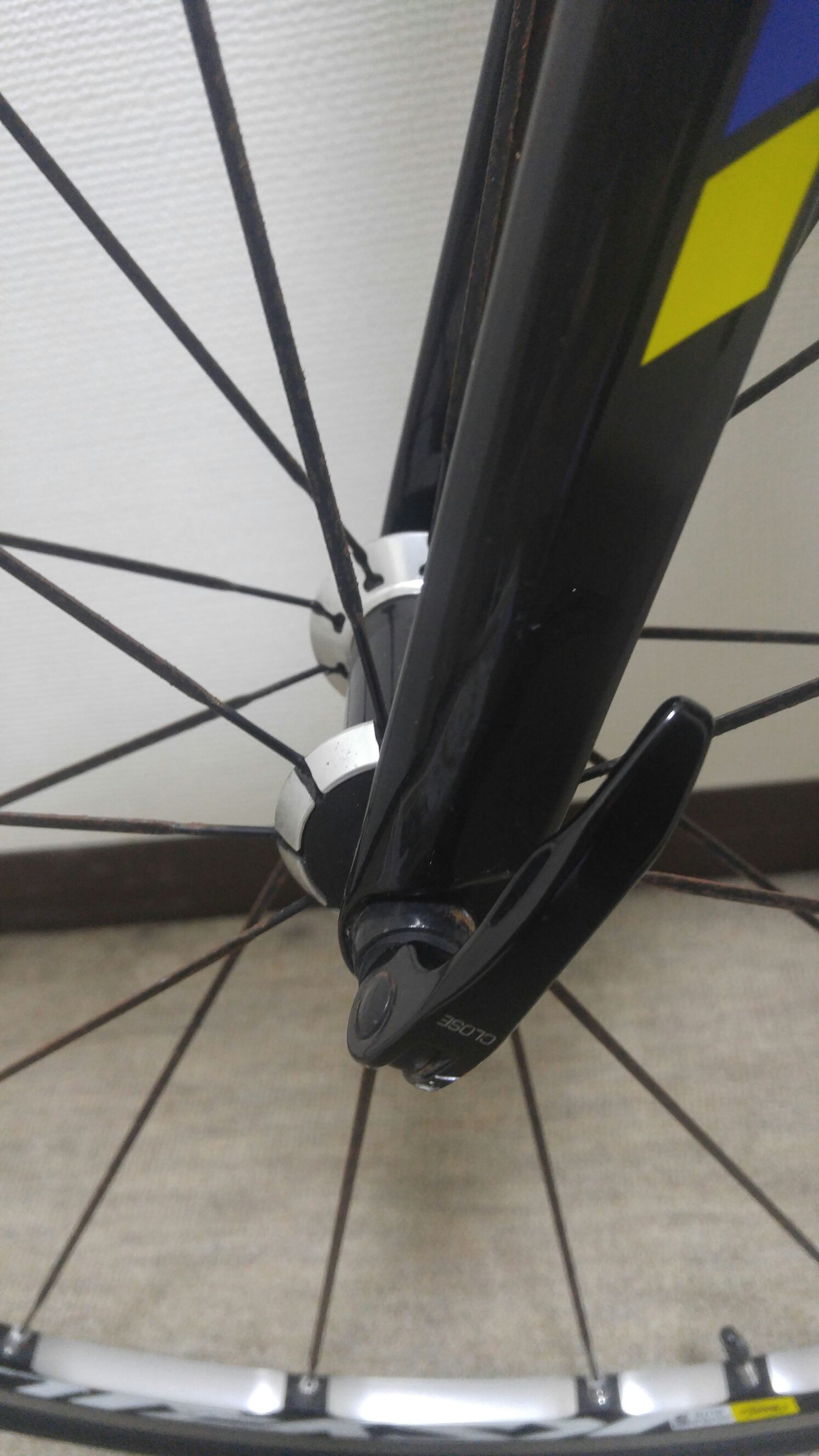 ただし、これは車輪が簡単に外せるクイックリリースレバー(↑こういうやつ)特有の問題です。