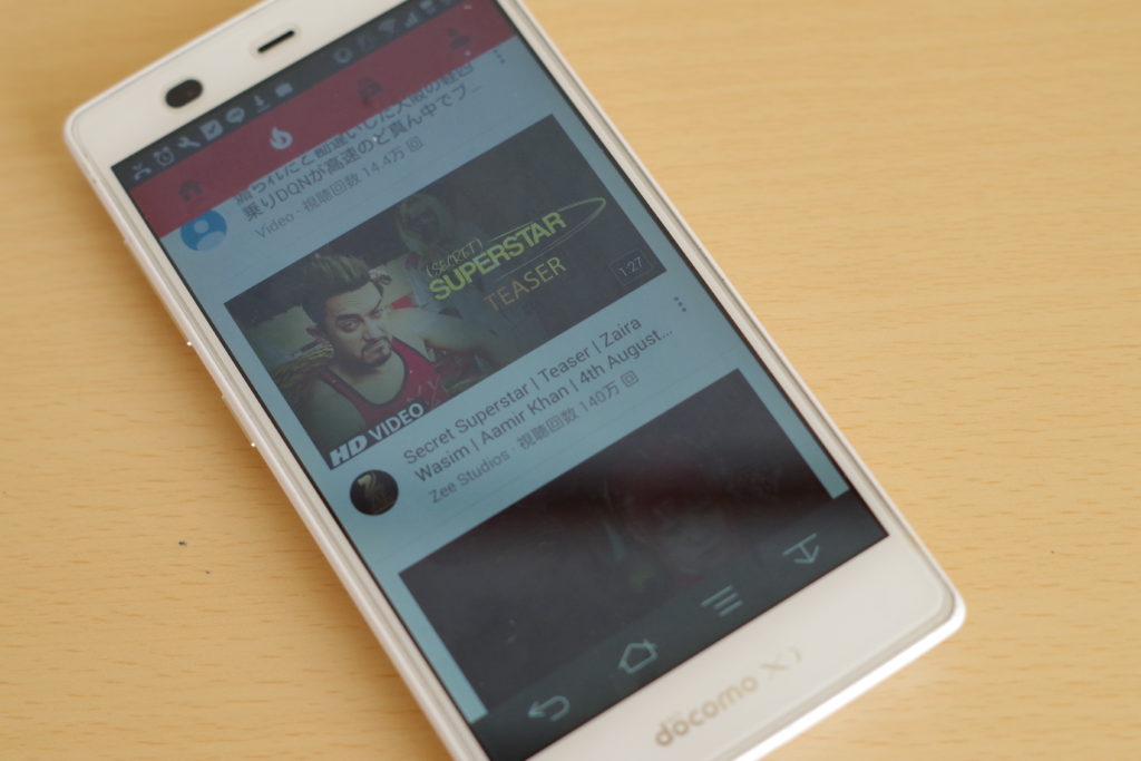 画面の最大輝度の高さも素晴らしい。愛用していたiPod touch第四世代と比べると晴天の屋外での視認性が段違いに良く、iPod touchでは全く画面が見えない時もF-01Fならばしっかりと見えます。