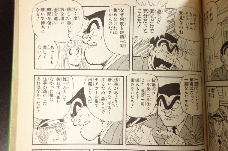 母方の親戚のおじいちゃんの50回忌に呼ばれた両さんが麗子に言ったセリフ。